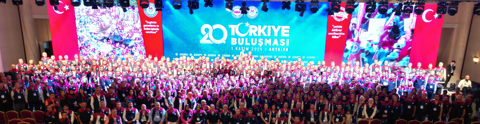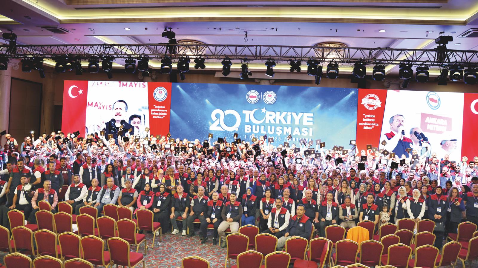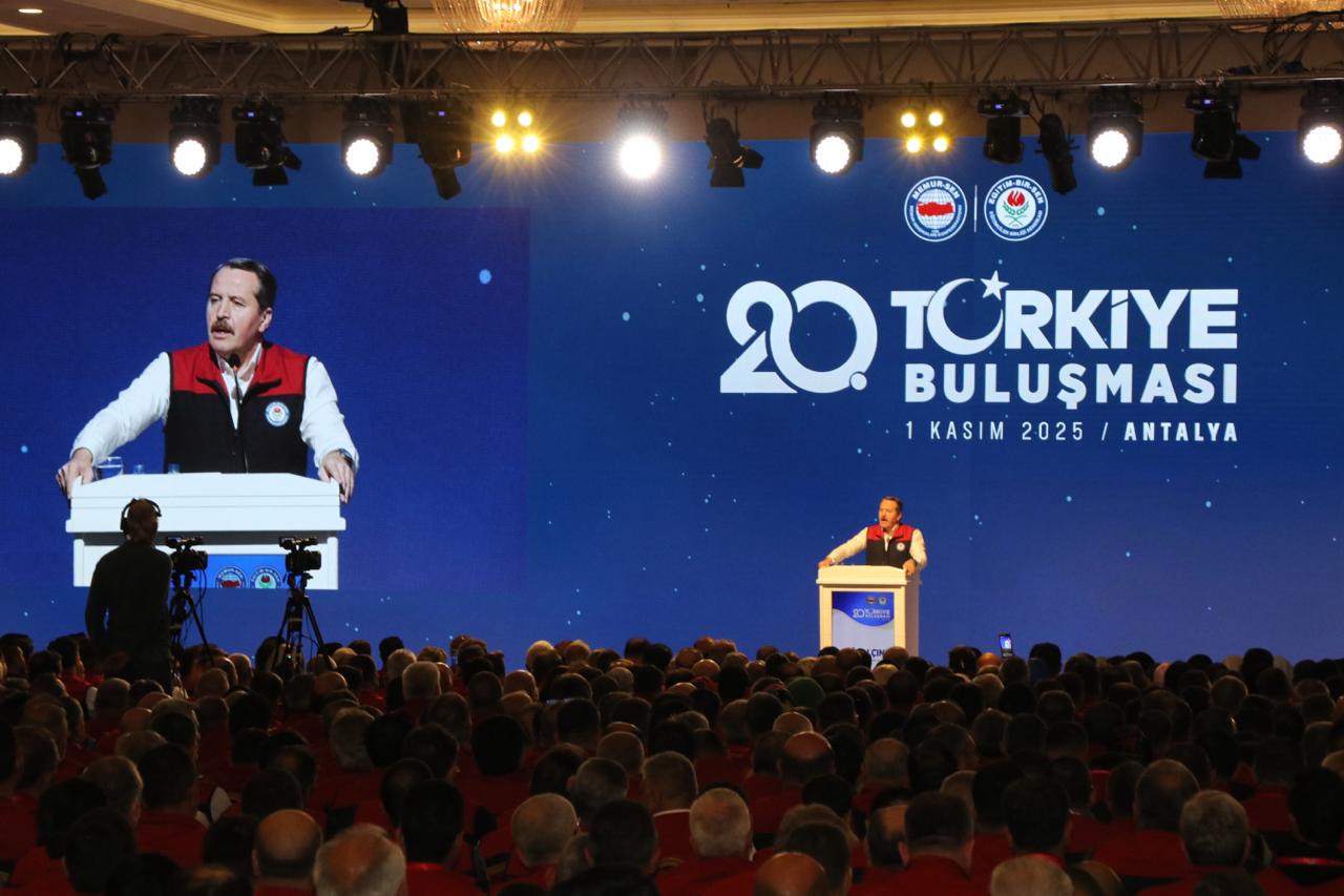 Eğitim-Bir-Sen 20. Türkiye Buluşması, şube yönetimleri, ilçe temsilcileri ve kadın komisyonlarının yer aldığı 2 bini aşkın teşkilat yöneticisinin katılımıyla Antalya’da gerçekleştirildi. Genel Başkanımız Ali Yalçın, teşkilatımızın lider kadrolarına yaptığı konuşmada, sendikal zeminde, mevzuat yönüyle reforma ihtiyaç bulunduğuna işaret ederek, “Masanın düzeninden süreye, tutanak sisteminden, hakeme, örgütlenmenin kapsamından greve, dayanışma aidatına kadar her yönüyle ele alınması gereken sendikal mevzuat, emeğimizle gayretimizle 2 yıl içinde değişmek zorundadır. Bunu başaracak olan biziz.” dedi.