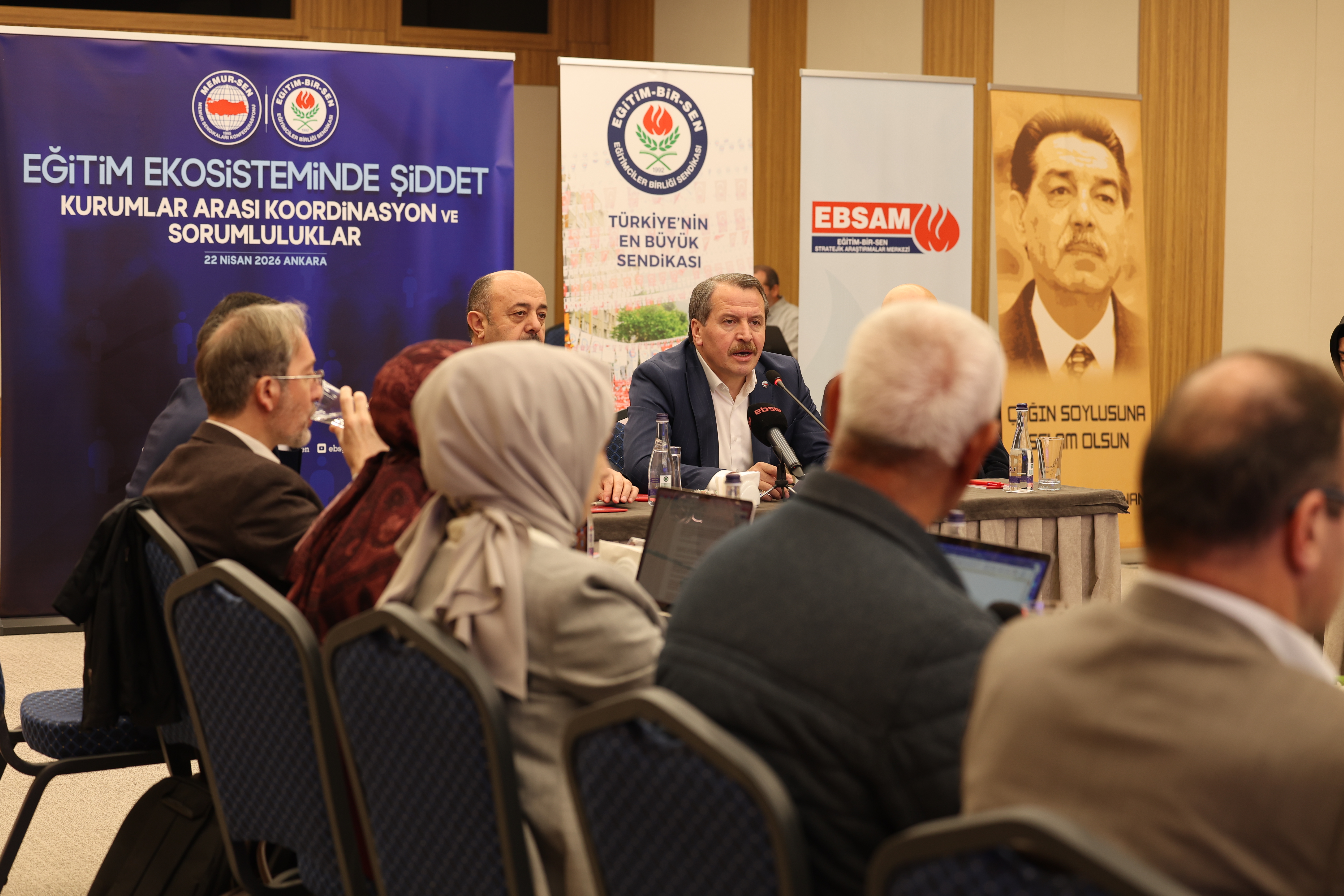 Eğitim-Bir-Sen olarak, son dönemde eğitim ortamlarında artan şiddet olaylarının toplumsal etkilerini bütüncül bir bakış açısıyla değerlendirmek amacıyla “Eğitim Ekosisteminde Şiddet: Kurumlar Arası Koordinasyon ve Sorumluluklar” başlıklı çalıştay düzenledik. Genel Başkanımız Ali Yalçın, farklı disiplinlerden uzmanların katıldığı çalıştayda, ”Şiddetin güncel görünümünü ve nedenlerini; şiddetin sosyolojik, psikolojik ve dijital boyutlarını; okul iklimini ve öğretmenin rolünü; aile, medya ve sosyal çevrenin etkisini; kurumlar arası koordinasyon ve sorumluluk alanlarını hep birlikte değerlendireceğiz. Amacımız dert yanmak değil, çare bulmaktır. Ortak akıl üretmek, sorumlulukları paylaşmak ve birlikte çözüm yolları bulmakiçin bir araya geldik.” dedi.
