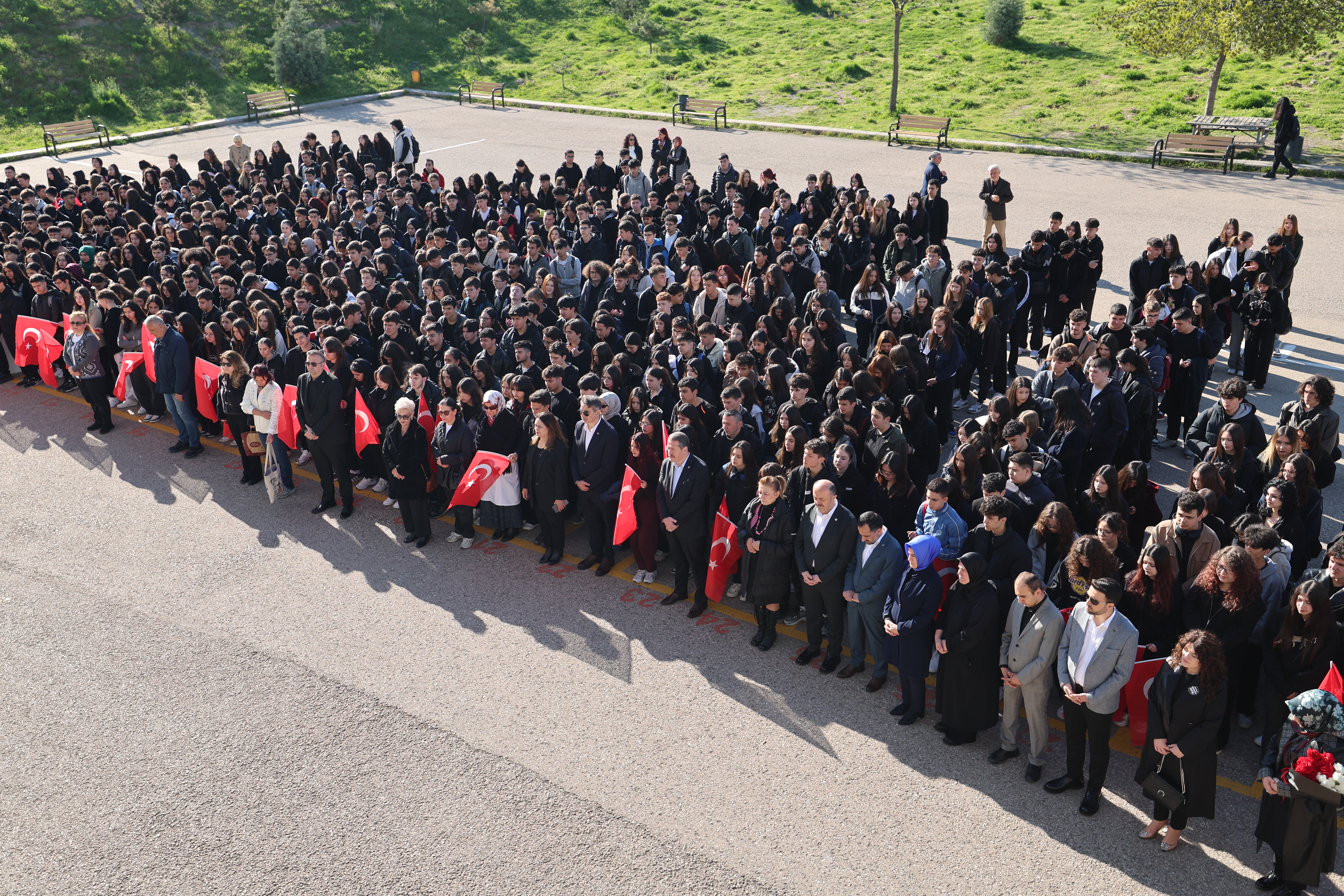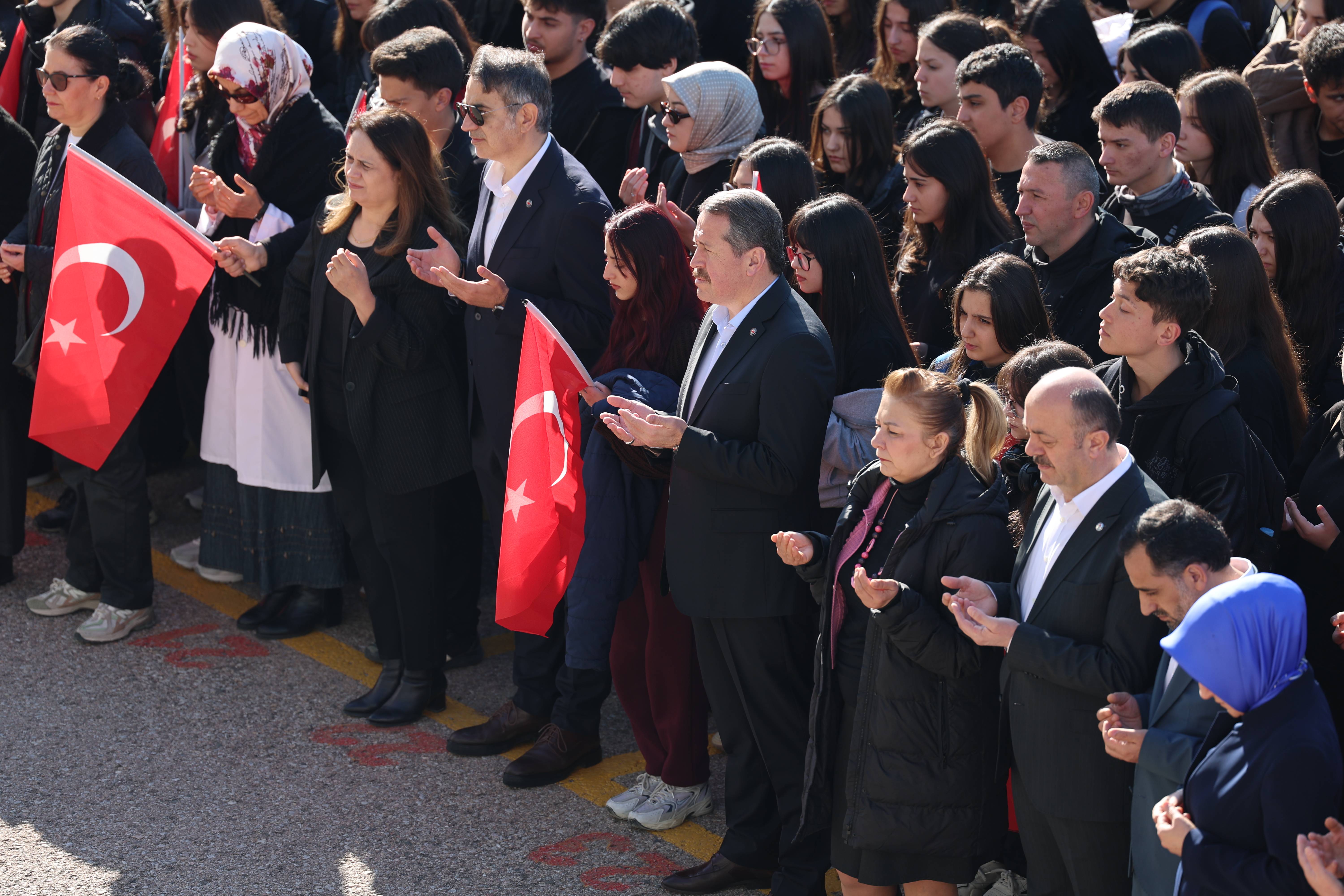 Geçen hafta okullarda şiddete karşı gereken tepkileri verdiklerini dile getiren Yalçın,“Bu hafta ise 81 ilde okullarda dualarla arkadaşlarımızı anıp, bayraklarla okullarımızı açıp okulumuza sahip çıkıyoruz; çocuğumuza, öğrencimize, mesleğimize sahip çıkıyoruz. İşimize sahip çıkıyoruz, diyerek yeni bir haftaya girdik.” diye konuştu.