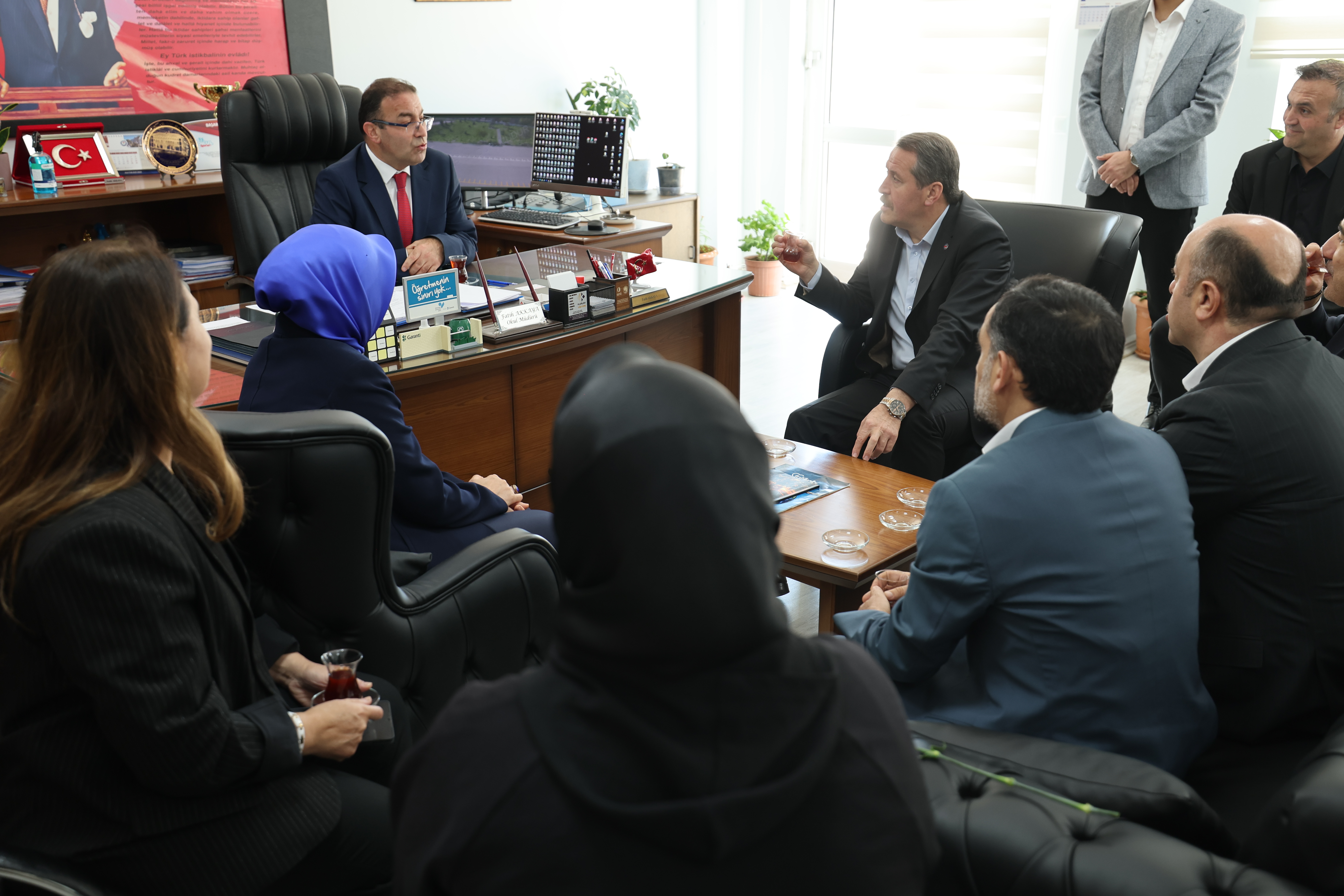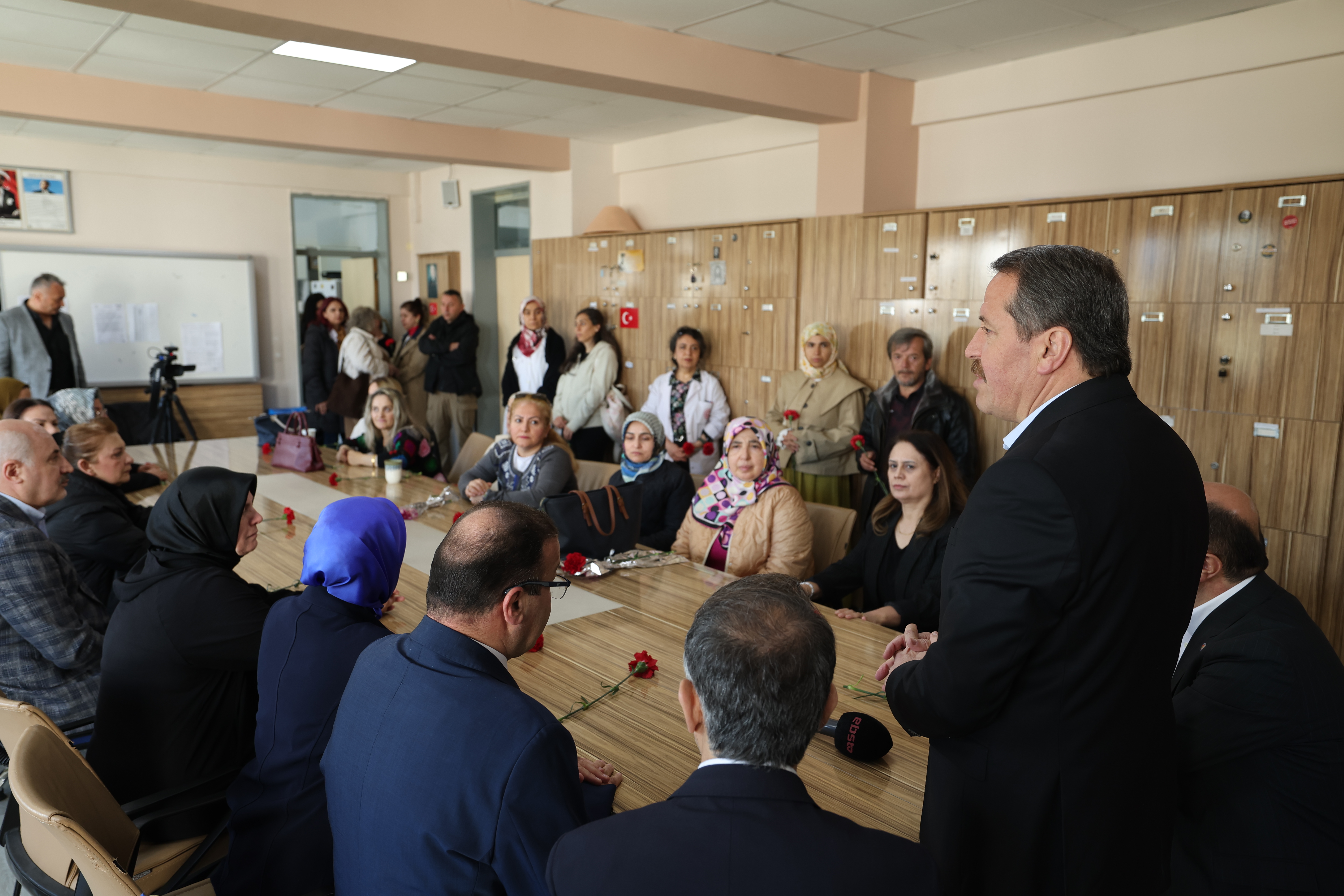 Daha sonra öğretmenler odasında eğitim çalışanları ile bir araya gelen Genel Başkanımız Ali Yalçın, “Karanlık niyetlerle korku üretmek isteyenlere karşı duracak, şehitlerimizi dualarla anarken aynı zamanda eğitimi, okullarımızı, öğretmenlerimizi, çocuklarımızı koruyacağız” mesajını verdi.