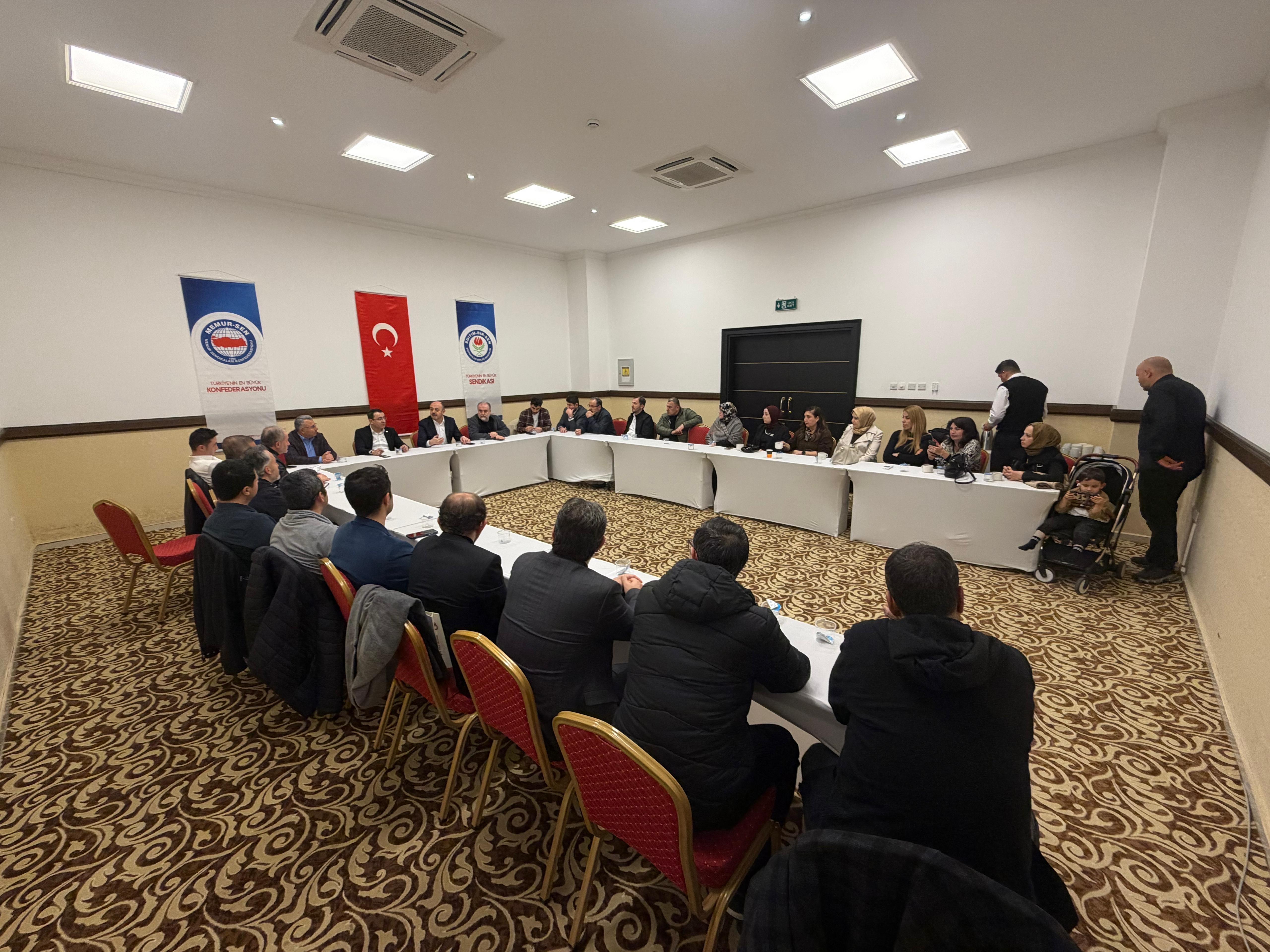 Genel Başkan yardımcılarımız Ali Deniz, Abdülaziz Aydın, Mesut Öner, Muammer Karaman, Ramazan Çakırcı, Kadın Komisyonu Başkanımız Sıdıka Aydın ile 146 şube başkanlarımızın yer aldığı heyetimiz, KIBTES Genel Başkanı Himmet Turgut ve yönetim kurulu üyeleri ile bir araya geldi.
