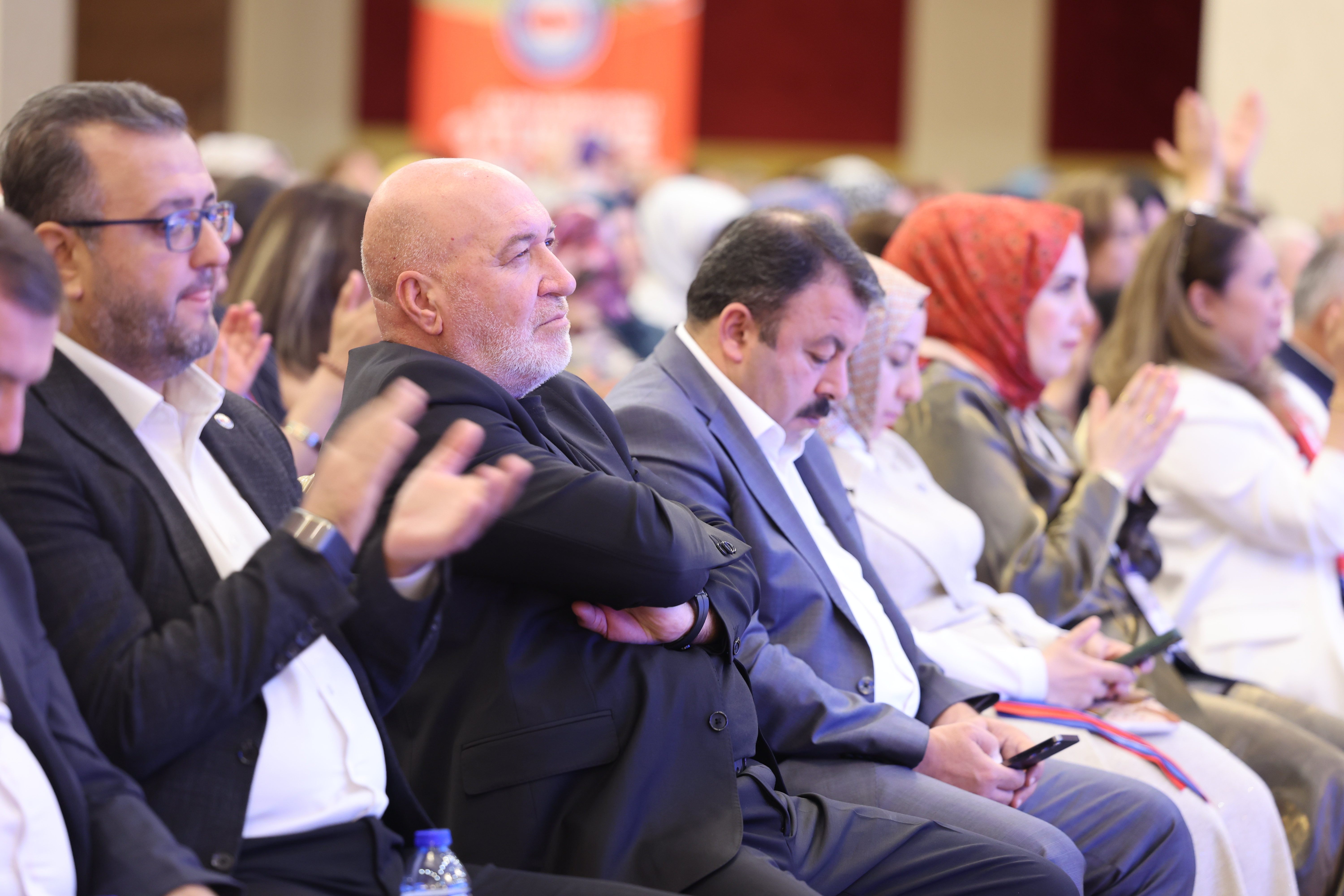 Sıdıka Aydın, “Ağustos ayı içerisinde 8. Dönem Toplu Sözleşme için kamu çalışanlarını temsilen masaya oturacağız. ‘Masanın konusu değil’ diyerek dışarıda bırakılan yüz binlerce kadın kamu görevlisi ile ailelerini ilgilendiren tekliflerimiz, Aile Yılı vesilesiyle hayat bulsun. Analık izin sürelerinden kreş hizmetine, tam istihdam güvencesiyle esnek ve dönüşümlü çalışma modellerinden, aile dostu vergi politikalarına, evlilik ve çocuk yardımından yarı zamanlı çalışma hakkına kadar birçok alanda iyileştirmenin hayata geçirilmesi için bu yıl bir fırsat olarak değerlendirilsin. Bir zamanlar kadınları inancı ve mesleği arasında tercih yapmaktan kurtaran o irade, Bugün de kadınları anne olmakla çalışmak arasında sıkışmaktan kurtarsın... Memur Sen olarak, bugüne kadar bu adımların samimi takipçisi olduk, bundan sonra da Olmaya da devam edeceğiz! İnanıyorum ki bu dava, siz öncülerimizle daha da büyüyecek, daha da güçlenecek, çünkü biz sadece bir sendikanın değil, Bir direnişin, bir uyanışın, bir ahlâk medeniyetinin neferleriyiz.” dedi ve konuşmasını tamamladı.