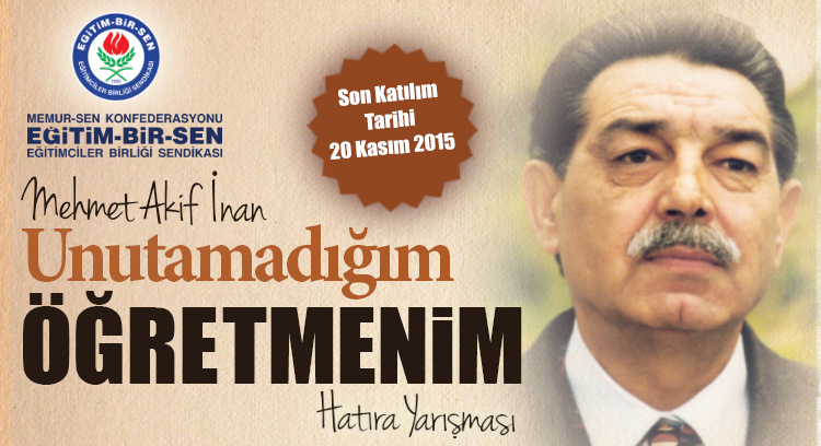 Eğitim-Bir-Sen olarak, daha önce beş defa çeşitli alt başlıklarda düzenlediğimiz hatıra yarışmalarını, üniversitelerimizde öğrenim gören öğrencilerin katılacağı “Unutamadığım Öğretmenim” konulu Mehmet Akif İnan Hatıra Yarışması’yla devam ettiriyoruz.