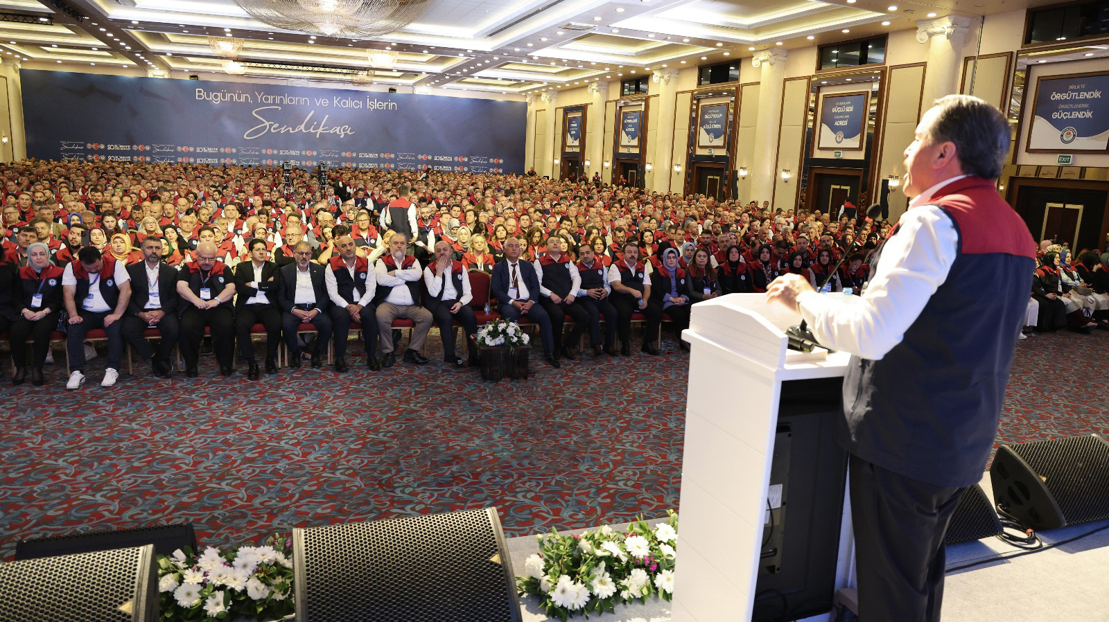“Dün masadan hep eli boş dönenlerin, bugün dilinin çok dönmesi haklı olduklarından değil, herkesin hakikati unuttuğunu sanmalarındandır. Biz dünü biliyor, bugünün vacibini yerine getiriyoruz. Unutmayalım; sendikacılık bizimle itibar kazandı. Kazanımlar dönemi bizimle başladı. İşimizin hakkını verdiğimiz için 1124 kazanıma imza attık. İşimizin hakkını vermek için 8. Dönem Toplu Sözleşme’de imza atmadık. Bizim sözümüz, imzamız kadar kıymetli, duruşumuz, kazanımlarımız kadar değerlidir. Onun için işimizin hakkını vermek, davamızın da hakkını vermektir.”
