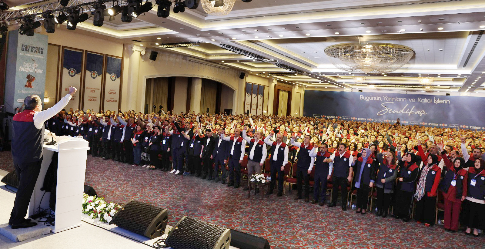 “Bize düşen dünü görmek, bugünü anlamak ve anın vacibini yerine getirmektir.Anın vacibi dün başardıklarımızın üzerine bugün yenilerini koymayı gerektiriyor.Ek ders birim ücretlerinin artırılmasından, mühendis, müfettiş, şube müdürü gibi mesleklerde ünvan-yetki-sorumluluk dengesinin sağlanmasına, okul ve bölgeler arasındaki nitelik farklarının giderilmesinden öğretmen açığının tamamen kapatılmasına, öğretmen ve yönetici atamalarında mevzuattan kaynaklı sorunlarının çözülmesinden, norm kadro fazlası öğretmenlerin zorunlu yer değişikliği sorunun ortadan kaldırılmasına, görevde yükselme ve ünvan değişikliği sınavlarının düzenli şekilde yapılmasından, üniversite idari personelinin yer değişikliğinin sürdürülebilir kalıcı bir çözüme kavuşturulmasına, 1’inci dereceye 3600 ekgöstergeden Mühendislik Meslek Kanunu’na, akademik zamdan, yardımcı hizmetler sınıfının genel idari hizmetler sınıfına geçirilmesine, 33/a ve 55/d kapsamındaki araştırma görevlilerinin iş güvencesine kavuşturulmasından, yükseköğretim tazminatı, döner sermaye payı, geliştirme ödeneği haklarının verilmesine, doçent kadrolarına atanamayan doçentler için kadro ihdasına kadar bütün sorunları yine hep birlikte çözeceğiz.”