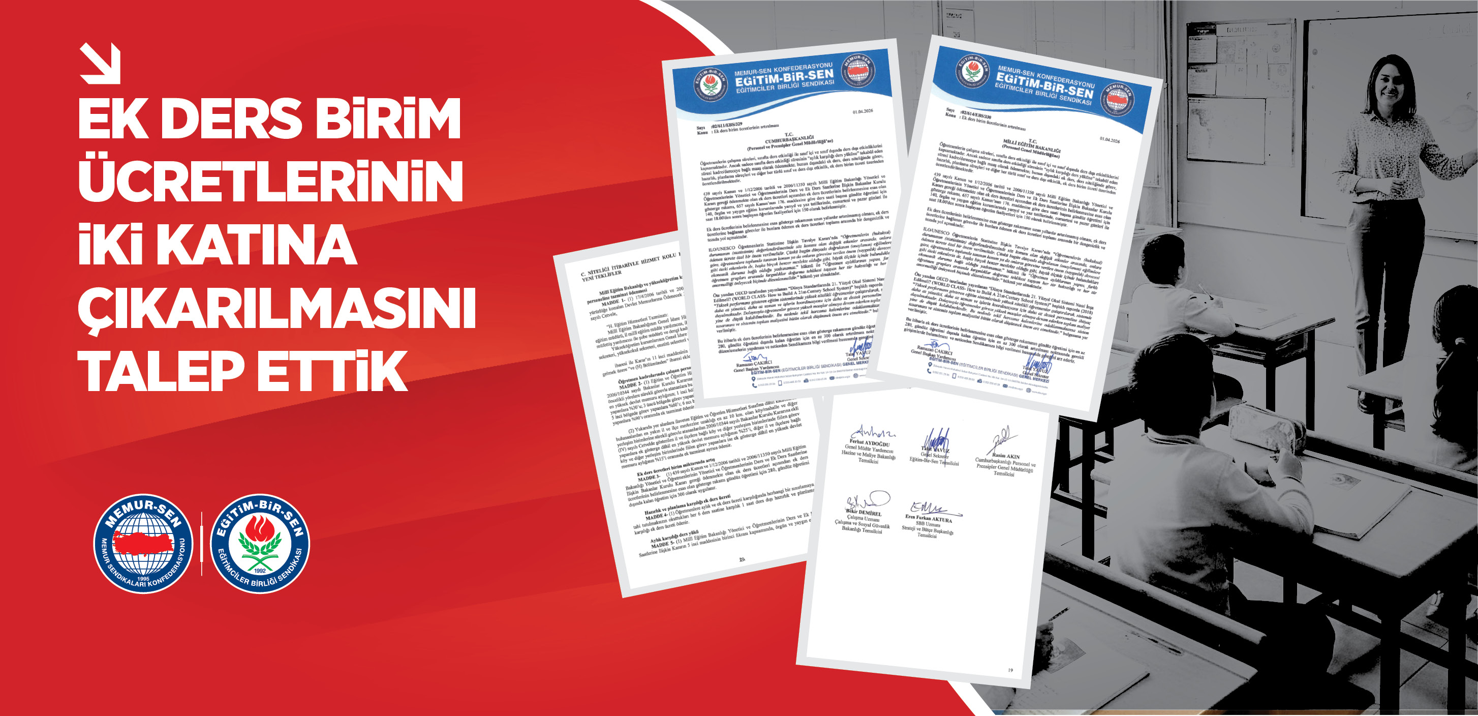 Bugün kılık ve kıyafet başta olmak üzere inanç ve hayat tarzlarının önünde engellerin kalkmış olmasında, katsayı ve 8 yıllık zorunlu eğitim döneminden 4+4+4 eğitim modeline geçmede, ‘Kur’an’ ve ‘Siyer’ derslerinin müfredata konulmasında, müfredatın militarist, vesayetçi, materyalist içeriğinden ayıklanmasında, öğretmenlerin ‘meslek kanununa sahip olmasında, nöbet ve ek ders ücretlerinin artırılması gibi sayısız kazanımda hep Eğitim-Bir-Sen’in kararlı, inançlı mücadelesi vardır.